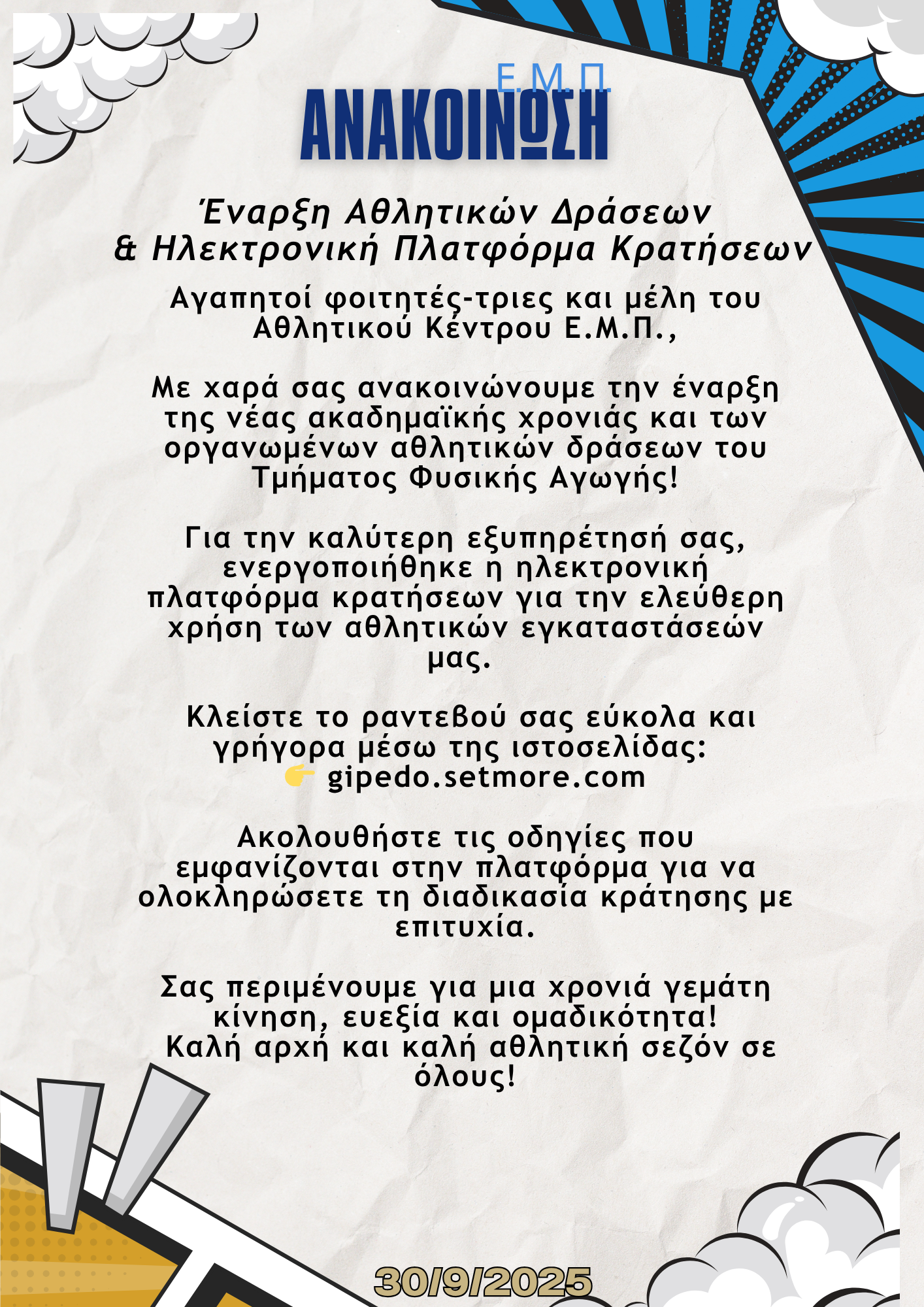 Έναρξη Αθλητικών Δράσεων